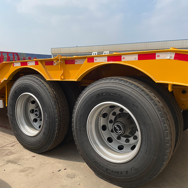 Formas estruturais diversas: Além da estrutura típica de viga côncava, a série de semirreboques de plataforma baixa também possui estruturas de placa plana, viga côncava e pneus expostos, e a viga longitudinal adota um tipo reto ou pescoço de ganso. Sua estrutura é do tipo escalonado, e a seção da viga longitudinal é em forma de I, que possui as características de alta rigidez e alta resistência.