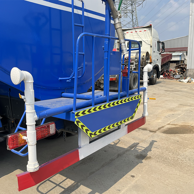 Aspersão traseira e lateral: O bico na parte traseira do veículo pulveriza água em grande largura para redução de poeira; Os bicos universais em ambos os lados do veículo são usados para lavar meio-fios e guarda-corpos.