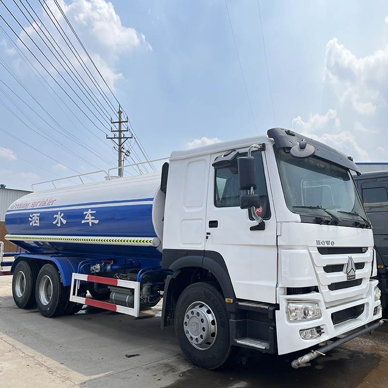 Chassi resistente: Caminhões pipa grandes geralmente utilizam chassis de caminhões pesados, como HOWO e SHACMAN, com um sistema de tração dianteira de quatro e traseira de oito (quatro eixos) e forte capacidade de carga. Eles serão equipados com motores a diesel de grande cilindrada (como motores Cummins ou motores Weichai com 290-450 cavalos de potência) para garantir potência suficiente mesmo sob cargas pesadas e para se adaptar a várias condições de estrada complexas, como estradas urbanas, rodovias e canteiros de obras.